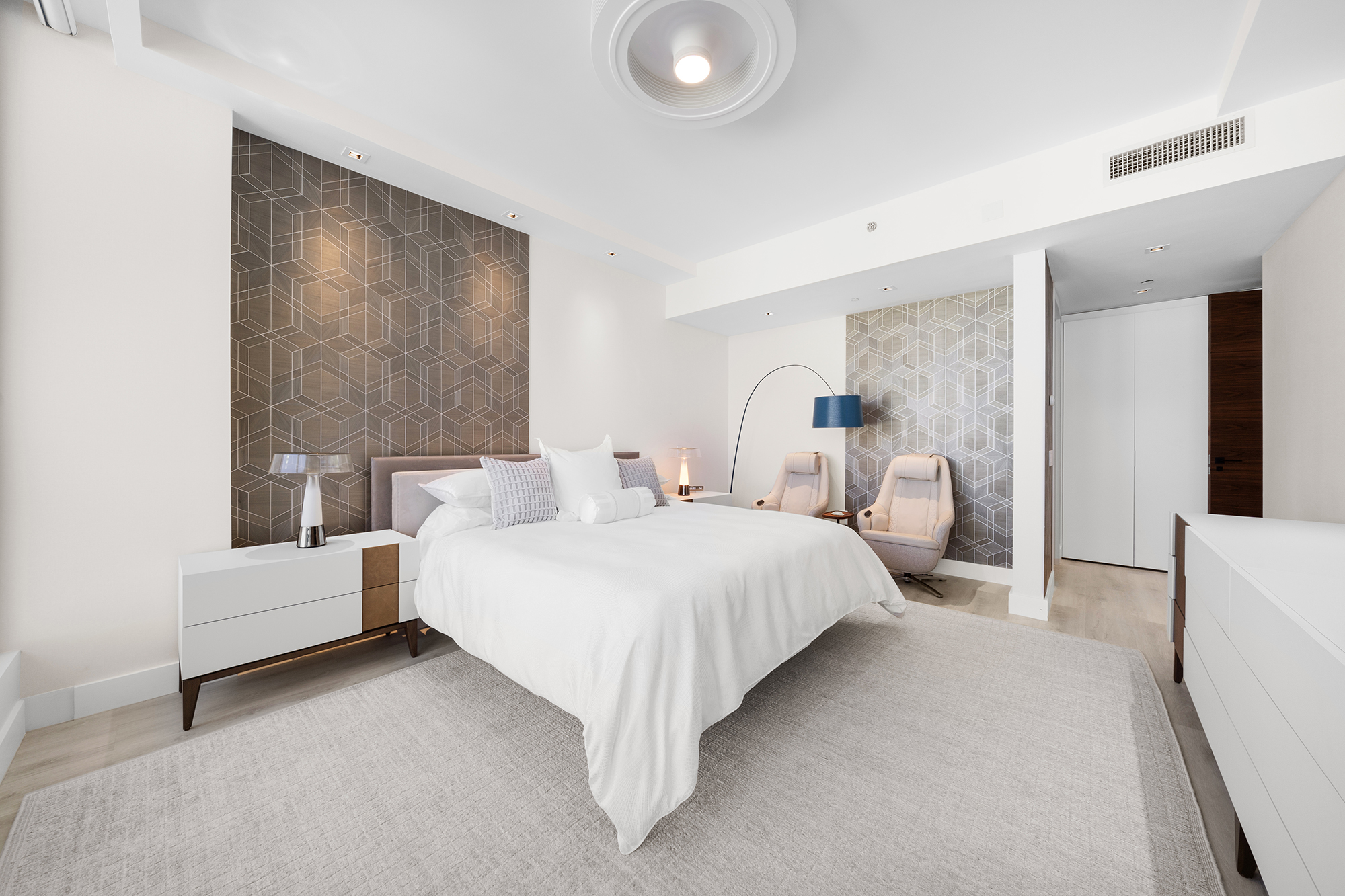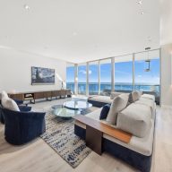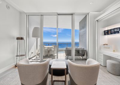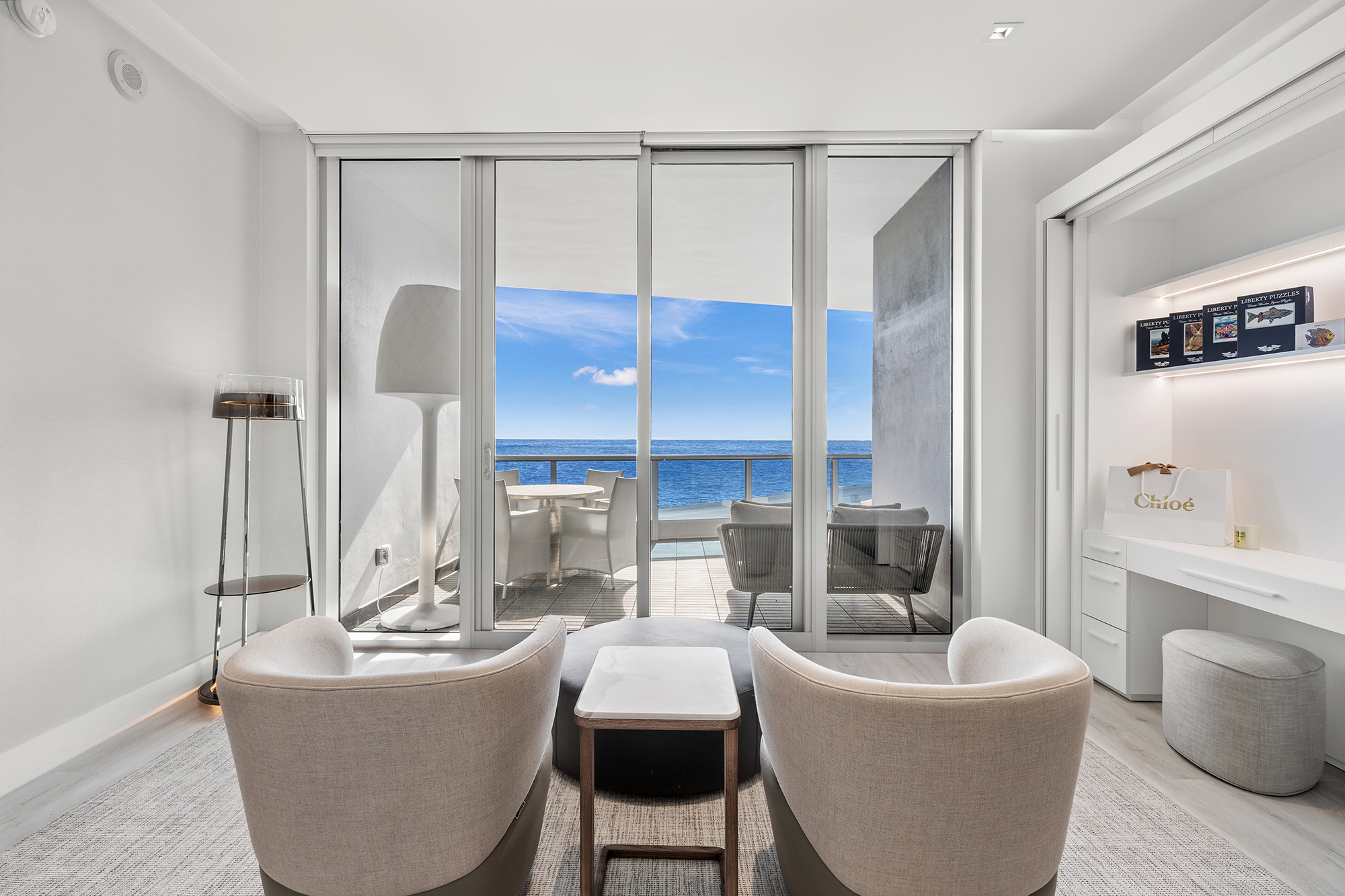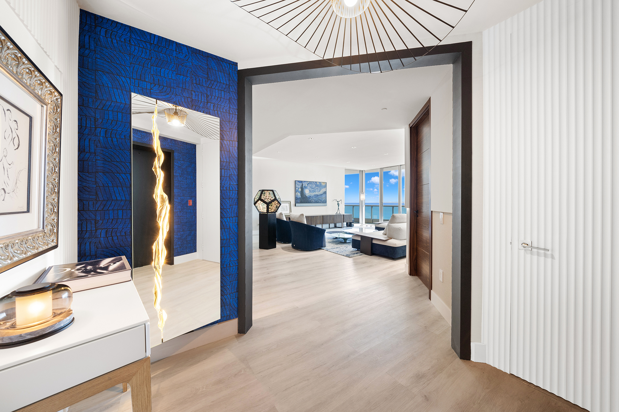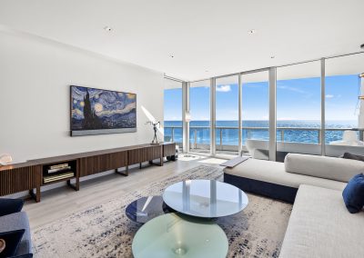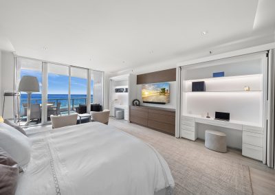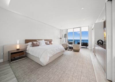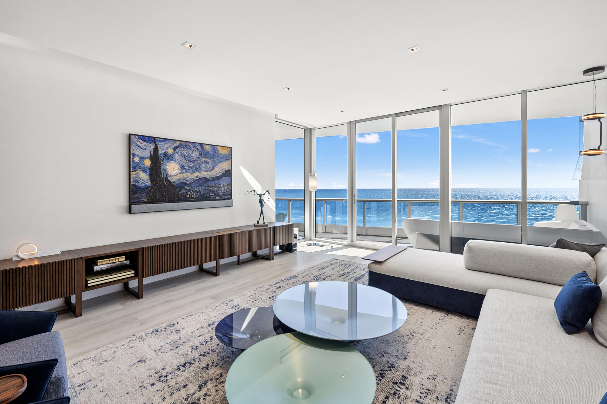 Designed for both beauty and functionality, this stunning oceanfront residence has been fully renovated to a high standard with exquisite attention to detail. Featuring a revised floor plan that maximizes natural light and views of the ocean and bay, new flooring, designer light fixtures, custom wall finishes, a brand-new kitchen with Miele and Liebherr appliances, custom doors throughout and more complemented by a vibrant interior design. Standout features include private elevator entry, smart home automation, media room/den, dining area, 3-beds/4.5 baths plus an additional staff room/office with full bath. Large oceanfront master bedroom features generously sized his and hers walk-in closets, direct access to the terrace and renovated master bath with walk-in shower and roman tub.