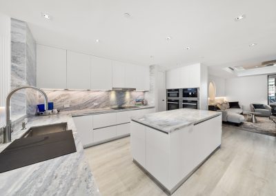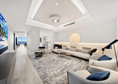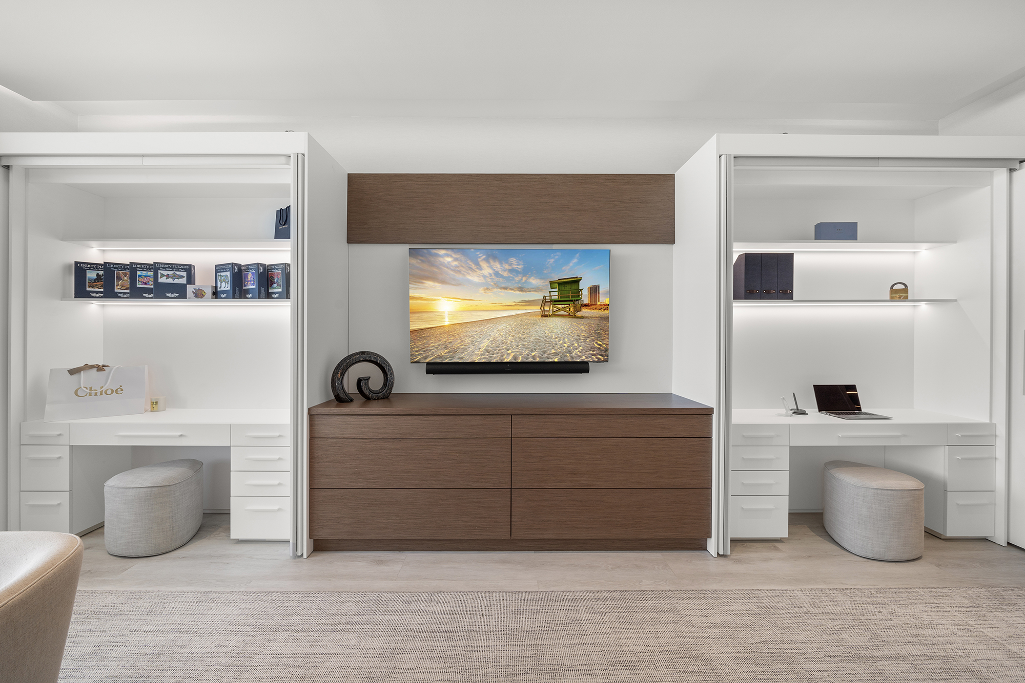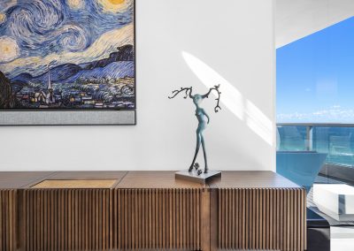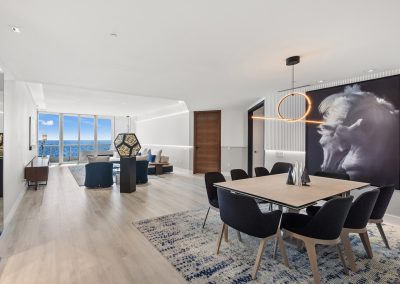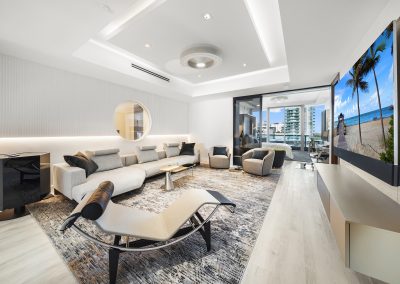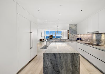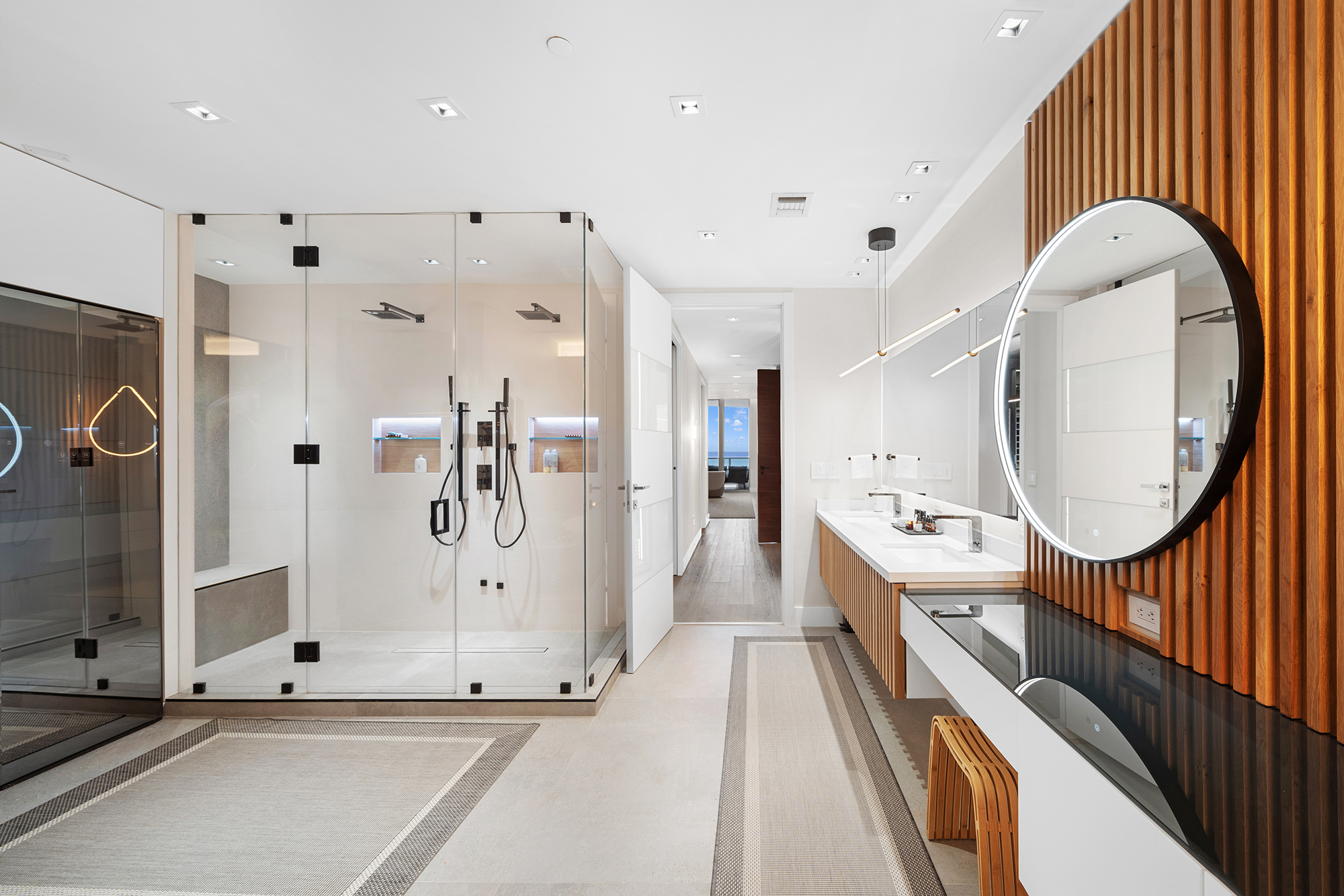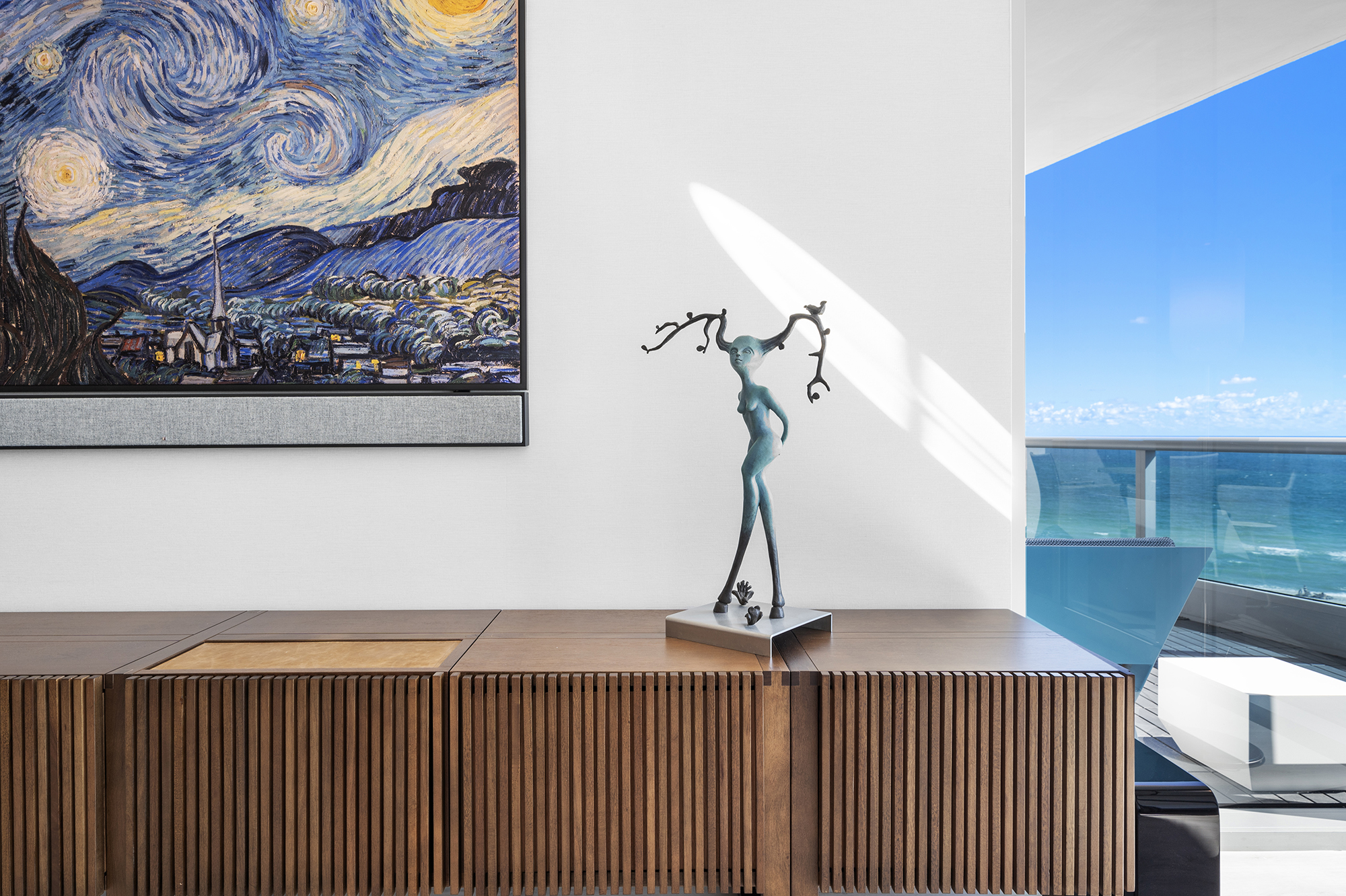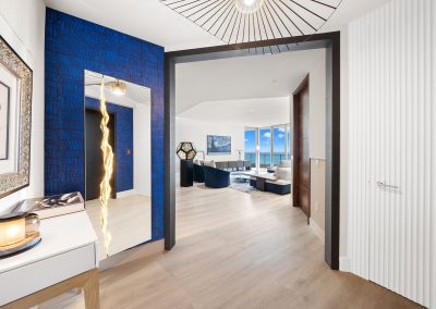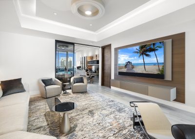 Designed for both beauty and functionality, this stunning oceanfront residence has been fully renovated to a high standard with exquisite attention to detail. Featuring a revised floor plan that maximizes natural light and views of the ocean and bay, new flooring, designer light fixtures, custom wall finishes, a brand-new kitchen with Miele and Liebherr appliances, custom doors throughout and more complemented by a vibrant interior design. Standout features include private elevator entry, smart home automation, media room/den, dining area, 3-beds/4.5 baths plus an additional staff room/office with full bath. Large oceanfront master bedroom features generously sized his and hers walk-in closets, direct access to the terrace and renovated master bath with walk-in shower and roman tub.